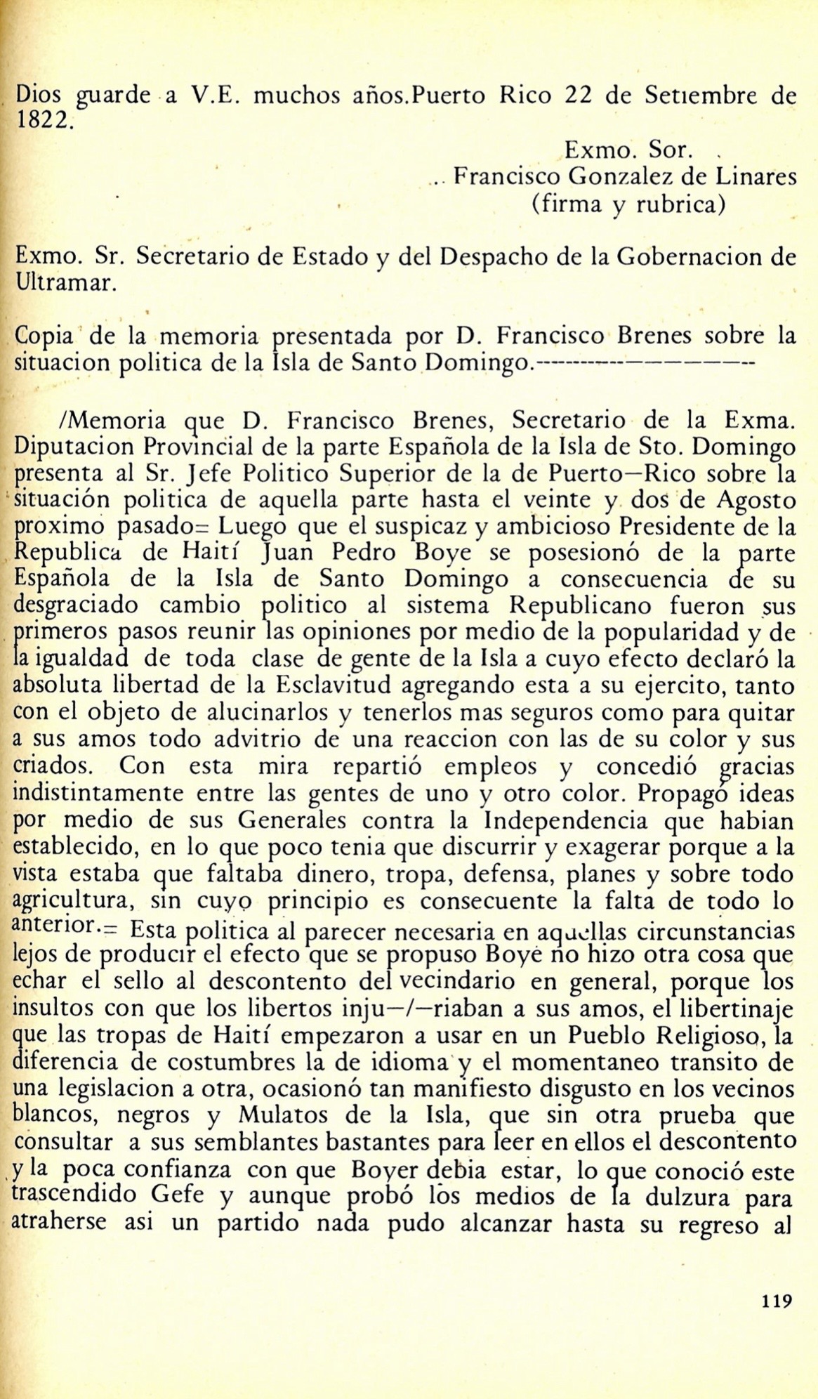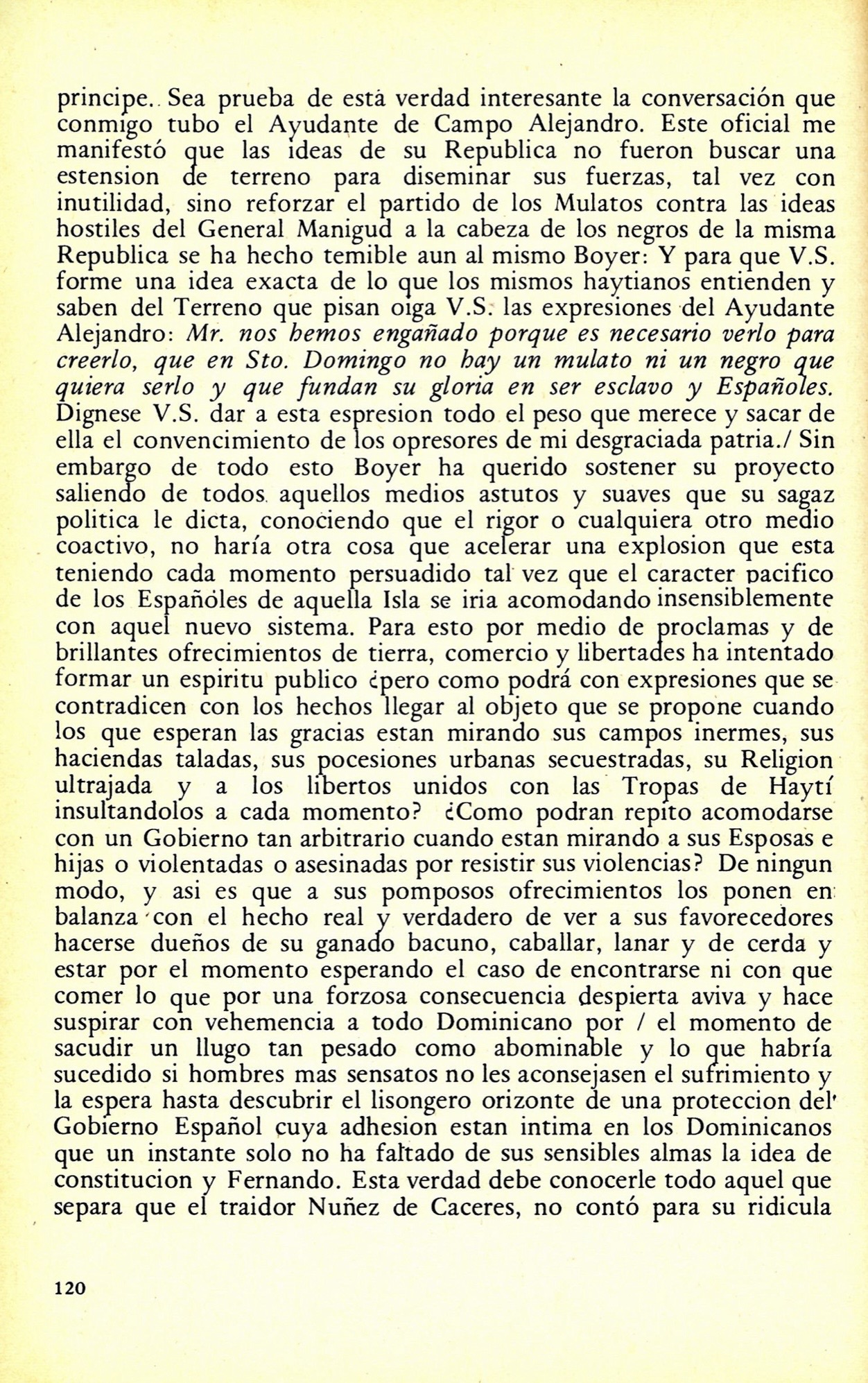 Considerando que el incendio al que alude fue ocasionado por las tropas haitianas en la invasión de 1805 y que las tropas estaban compuestas en su mayoría por negros africanos, llama la atención que el presbítero don Agustín Tabares se refiera a ellos como «los indígenas» que viene siendo lo mismo a «los indios». Habida cuenta que faltaban 34 años para establecerse la República Dominicana como país libre e independiente y 120 años para que comenzara el gobierno de Rafael Leonidas Trujillo.