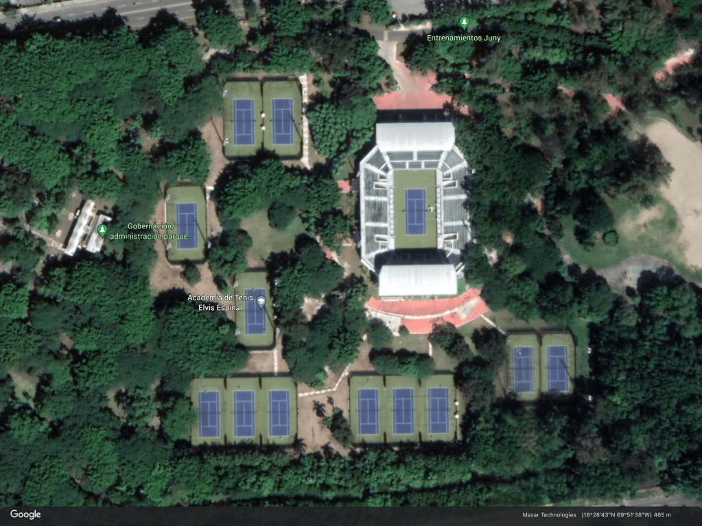 Vista aérea en Google Earth del Centro Nacional de Tenis en Santo Domingo Este.
