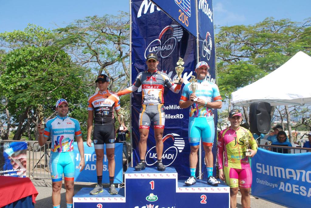 Ciclistas dominicanos mostrando sus medallas tras ganar un torneo oficial.