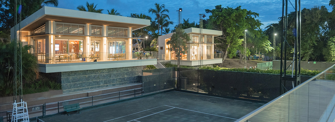 Su aspecto quizás mas llamativo, y esto lo diferencia de cualquier otro centro de tenis del país, sea público o privado, es su cancha central que es la 13ra cancha del complejo. Está en un estadio de Tenis, el único de su tipo en el Caribe e indudablemente el mas hermoso. En toda América Central hay uno en San Salvador, mas no es tan vistoso ni el mas grande de los dos.