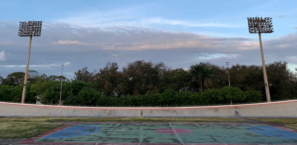 Atletas dominicanos usando el velódromo para prácticas de ciclismo.