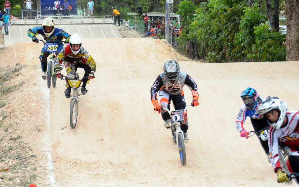 Dominicanos jóvenes en un torneo todoterreno de BMX.