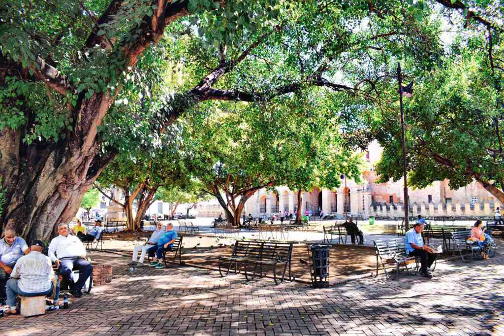 El centro de la ciudad Colonial y era la plaza Mayor en los tiempos de España, el parque Colón parecía una escena de una guerra. Ni siquiera un árbol se veía verde. Hasta las luminarias sufrieron daños.