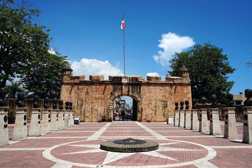 Construido en el siglo XVI por los españoles. Lo ha visto todo la puerta del Conde. Todavía está en pié en su totalidad al lado de su ciudad. Fíjese en la eliminación de la calle para que la puerta del Conde sea parte del parque Independencia.