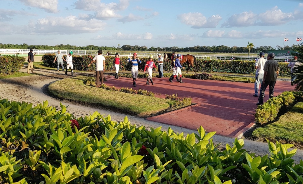Jinetes dominicanos en el hipódromo V Centenario en Santo Domingo Este.