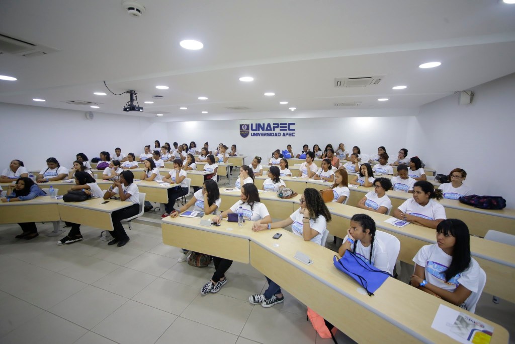 Estudiantes dominicanos participando en un viaje escolar al Palacio del Instituto Postal Dominicano para aprender como funciona.