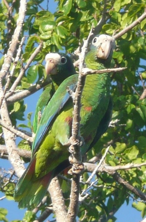 Un par de carteros dominicanos. Nótese que sus uniformes consiste en una camisa azul con el logo de INPOSDOM y debajo la palabra «CARTERO». El de la derecha tiene la gorra azul oscuro con el logo de INPOSDOM.