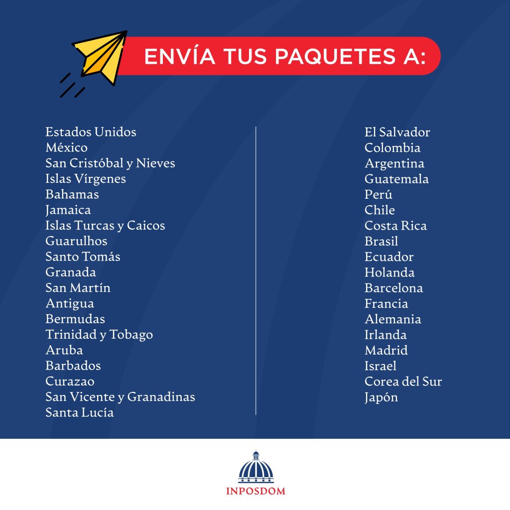 INPOSDOM puede enviar o recibir correo de estos países y ciudades en el extranjero. Sin bien incluye a muchos lugares, no es a todos los países.