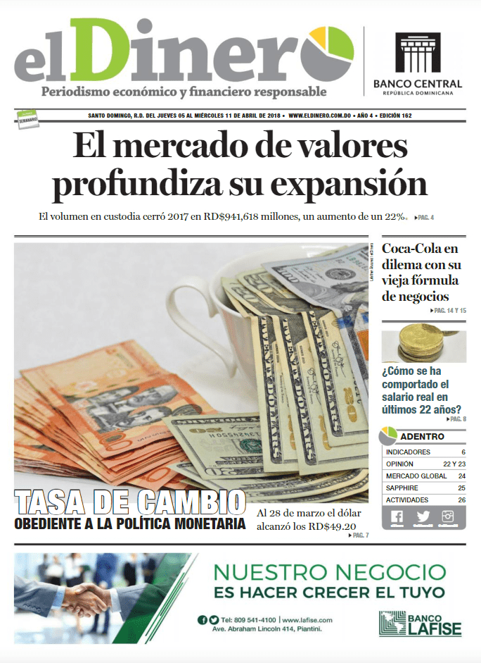 El periódico financiero líder en la Repúbl8ca Dominicana es El Dinero.
