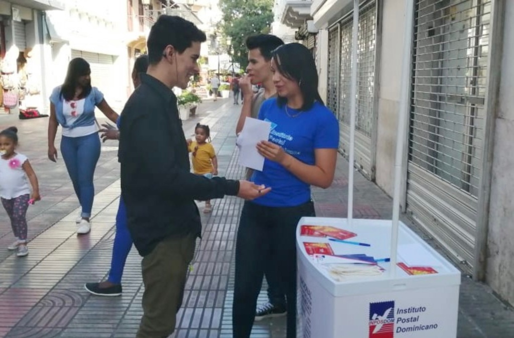 El INPOSDOM esparce el conocimiento de sus servicios al público dominicano. Este evento tuvo lugar en calle El Conde en Santo Domingo.