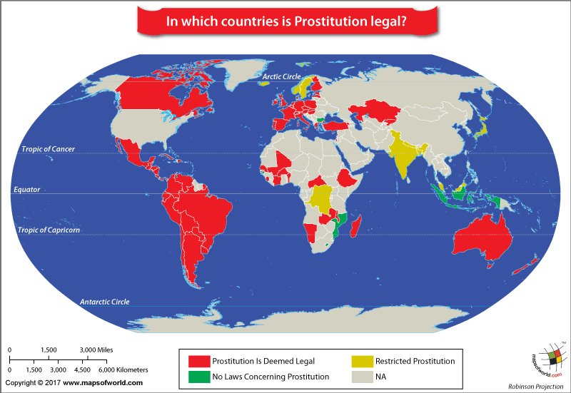 Los países en rojo permiten la prostitución.