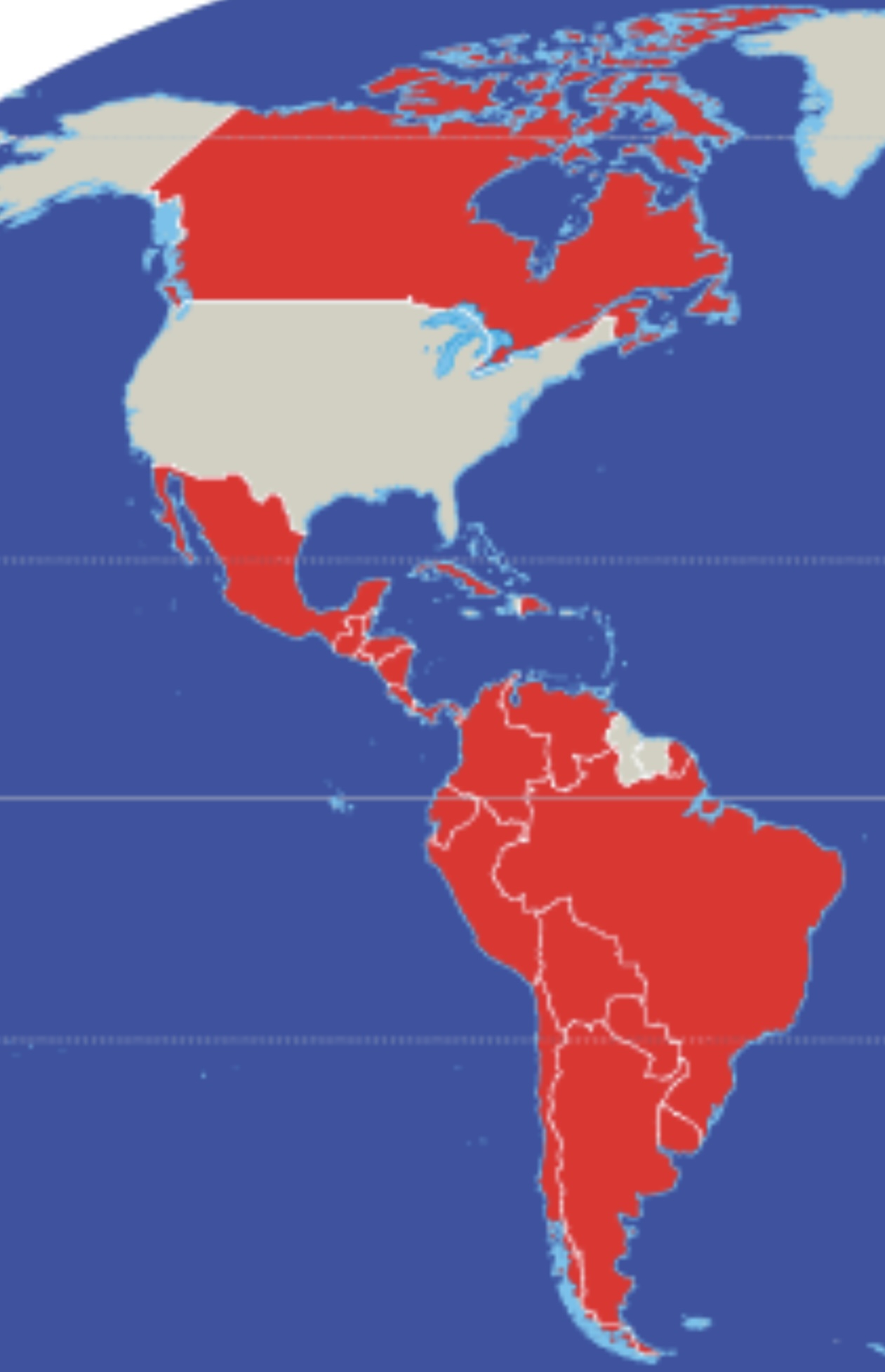 Acercamiento a América. Nótese que en el Caribe es legal la prostitución en dos países solamente: Cuba y República Dominicana. Otro a notarse es que estos dos píses junto con México son los países latinoamericanos más cerca a Estados Unidos, país en el que la prostitución es ilegal.