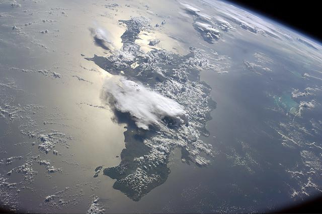 Vista del mar y las montañas desde Jeremías, Haití.