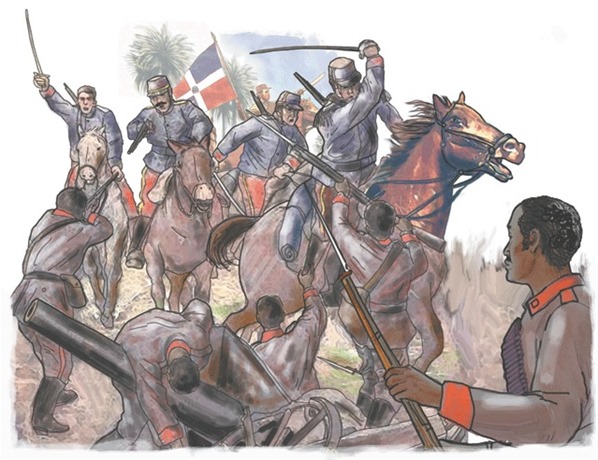 Militares dominicanos en la actualidad. A los dominicanos también los llamaban españoles por ser nativos de la parte española de Santo Domingo. Por tanto, es muy posible que la mayoría de las tropas españolas mencionadas en el artículo eran dominicanos y los españoles nativos de la península ibérica eran los generales. Lo mismo ocurría en los otros territorios españoles como Puerto Rico y Cuba. De hecho los puertorriqueños que son parte de las Fuerzas Armadas de los Estados Unidos son militares estadounidenses porque ahora Puerto Rico es territorio de los Estados Unidos. (Imagen de CDN).