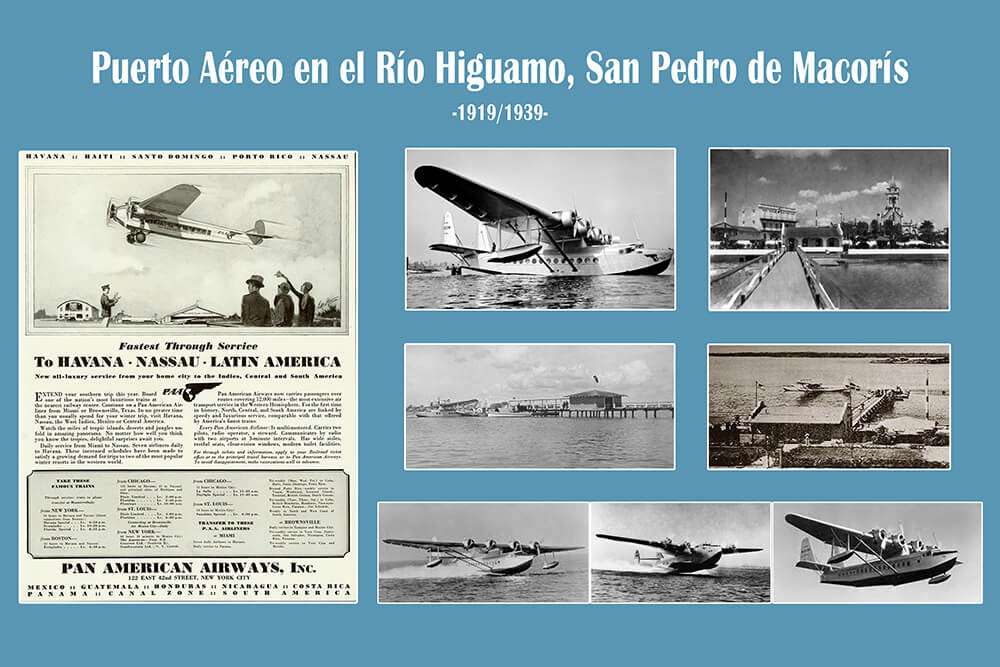 Collages del avión acuático de Pan American Airways en el río Higüamo en San Pedro de Macorís (mas aquí).