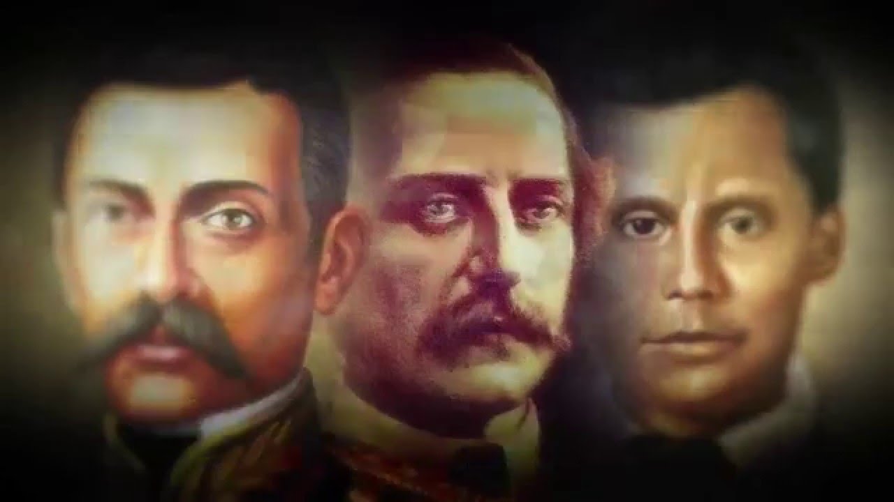 Izquierda: Matías Ramón Mella, centro: Juan Pablo Duarte, derecha: Francisco del Rosario Sánchez.
