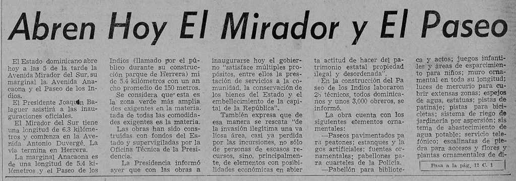 Ese mismo día el periódico El Caribe publicó un artículo sobre el parque y su inauguración. Dicho artículo es mostrado a continuación.