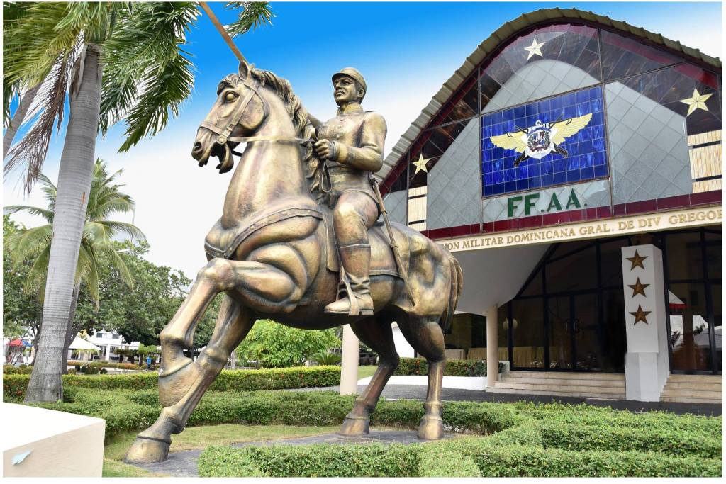 Estatua del general Gregorio Luperón montando un caballo y en una mano agarrando un machete.