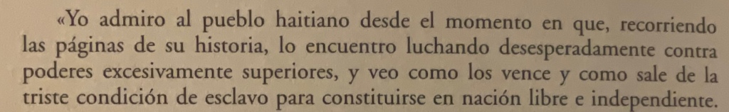 No es posible que una persona que odia a los haitianos, los pudiera admirar en cualquier manifestación. Ningún racista dijera eso de los negros, sean haitianos o de otros sitios en los que son mayoría. Su postura que no era antihaitiana ni antinegro se fortalece mucho mas sl ver lo que dice en una carta a alguien que no era haitiano ni estaba casado con una haitiana. Además esta carta no era de ser público.