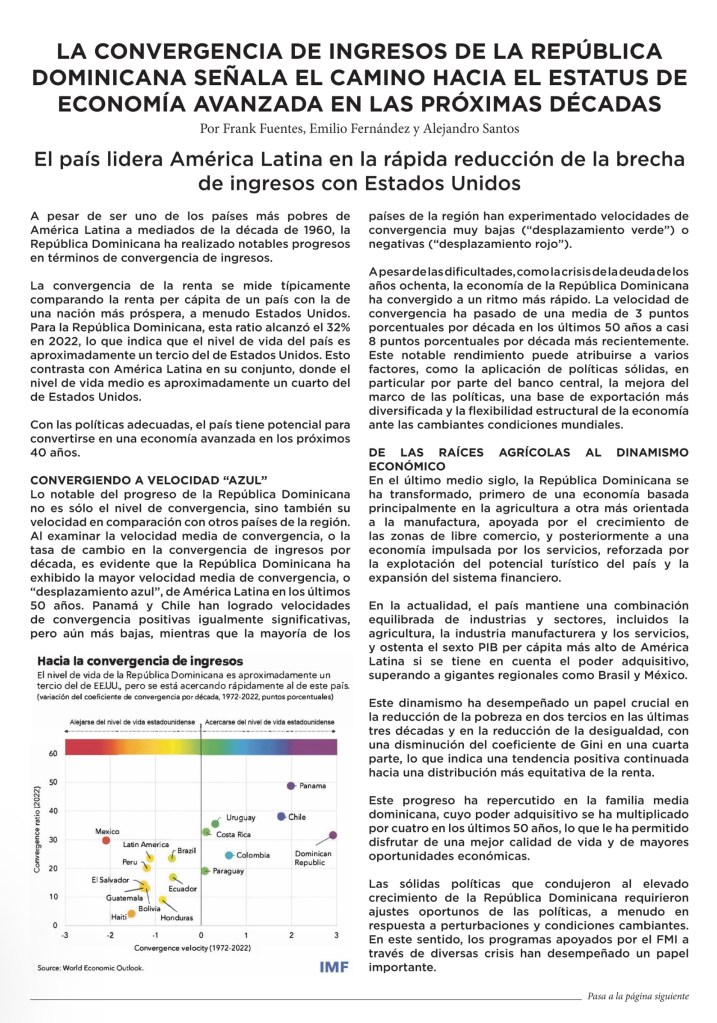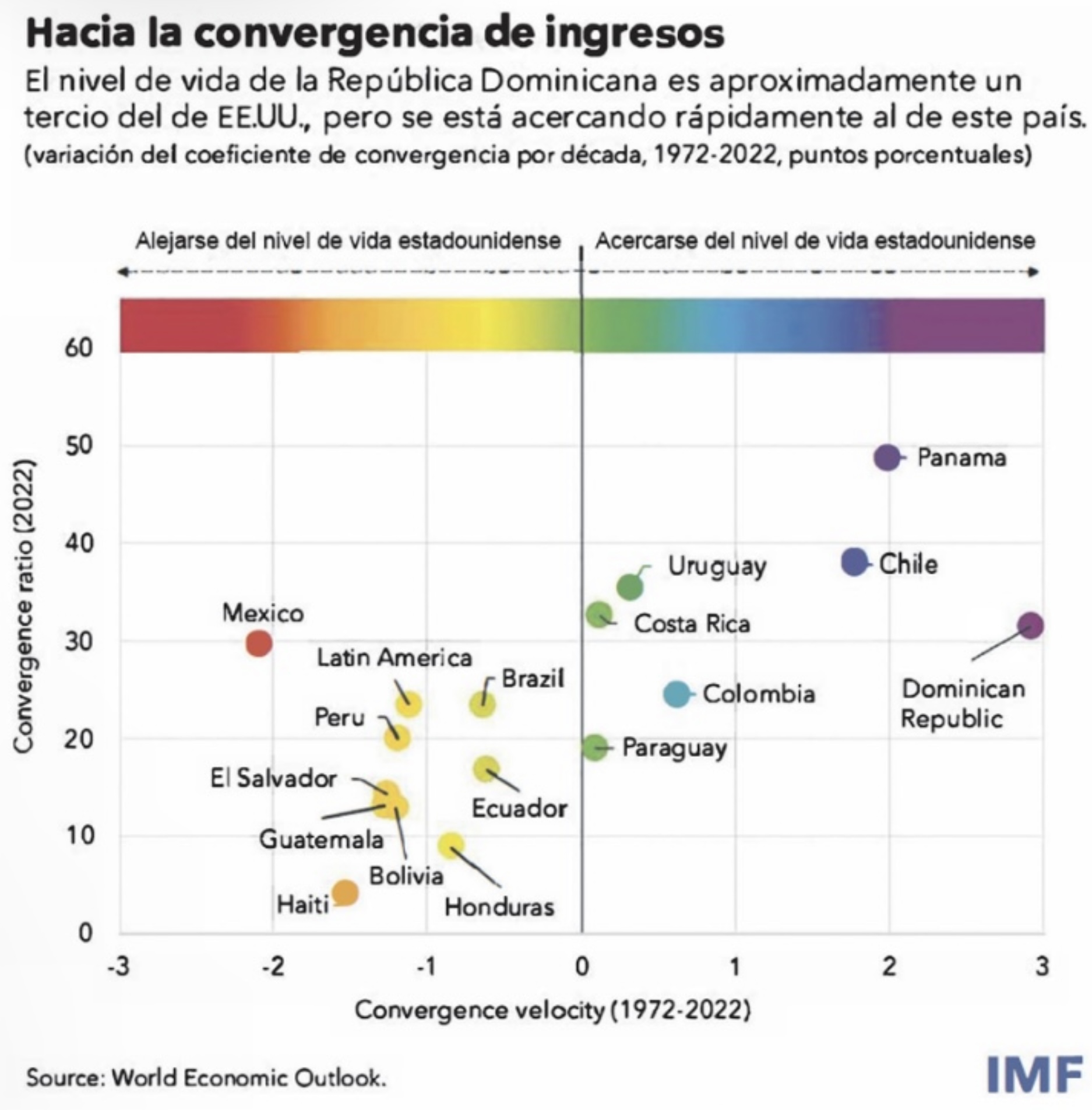La República Dominicana es un país que viene desarrollándose a pasos agigantados en décadas recientes. Se está claro que en muchos aspectos y, especialmente, en lo económico, el país ha avanzado mucho respecto a como era en un pasado no muy reciente. Lo que no sabíamos es que este país creado por Juan Pablo Duarte, Francisco del Rosario Sánchez y Matías Ramón Mella, y restaurado por el general Gregorio Luperón, defendido por miles de dominicanos entre los cuales muchos perdieron la vida, otros recibieron discapacidades y otros se convirtieron en héroes viventes; este país separado de Haití y que optó por la no reanexión a España, es hoy el país que más converge en América Latina.